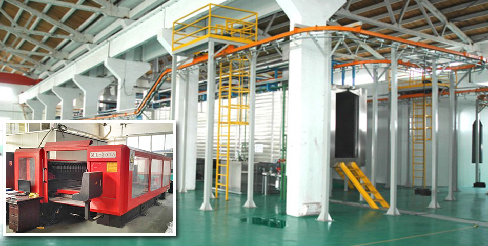 引入(ru)瑞(rui)士金馬智(zhi)能化靜電噴粉(fen)流水線、日本Panasonic機(ji)器人(ren)自動(dong)焊接(jie)中(zhong)心、意(yi)大(da)利salvagnini S4+P4沖(chong)剪折鈑金自動(dong)柔性生產線、P2自動(dong)高效(xiao)多邊折彎中(zhong)心、L3全自動(dong)上下料激光切割(ge)機(ji)…
